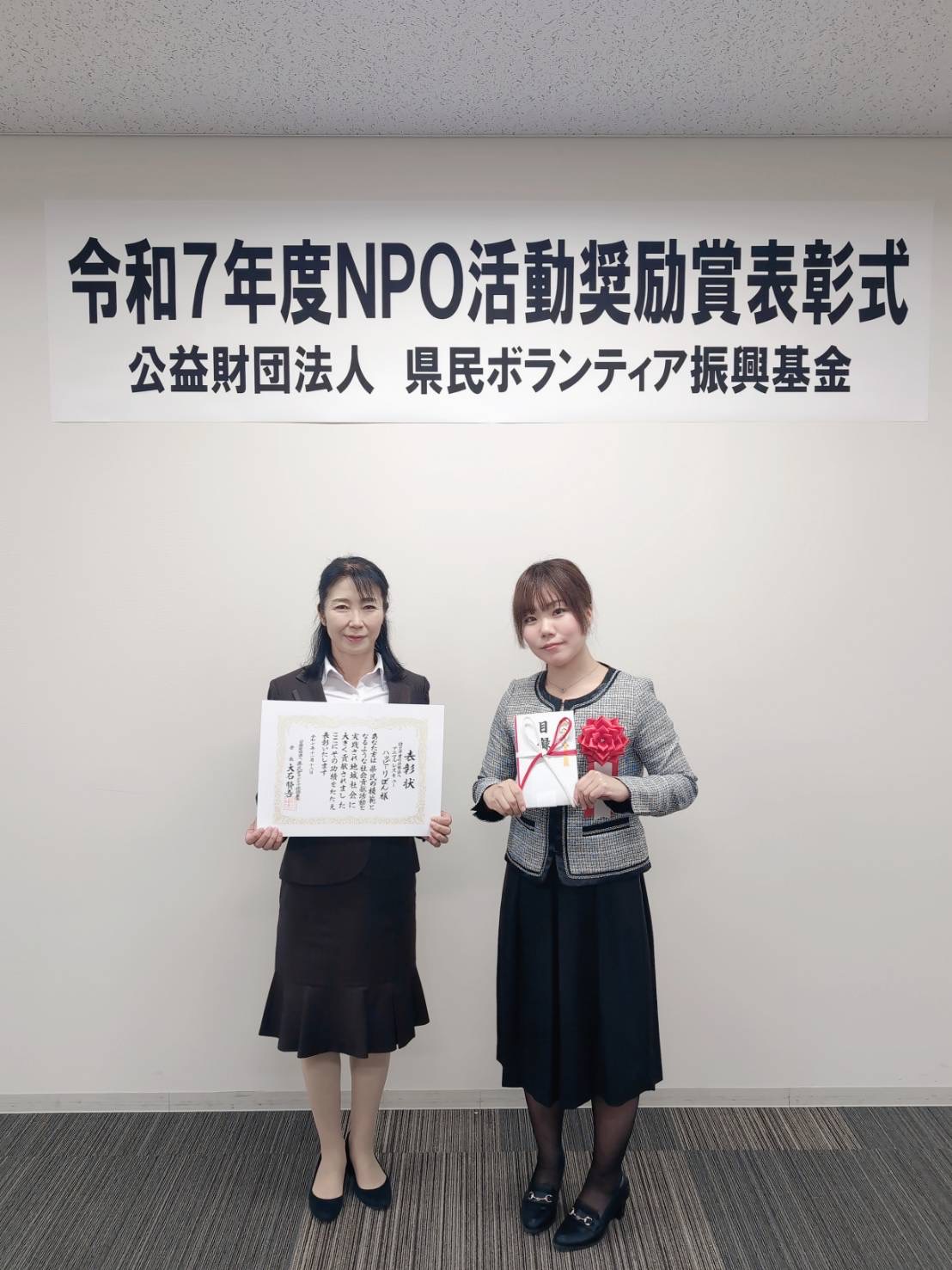 県民ボランティア振興基金より、令和7年度NPO活動奨励賞をいただきました。